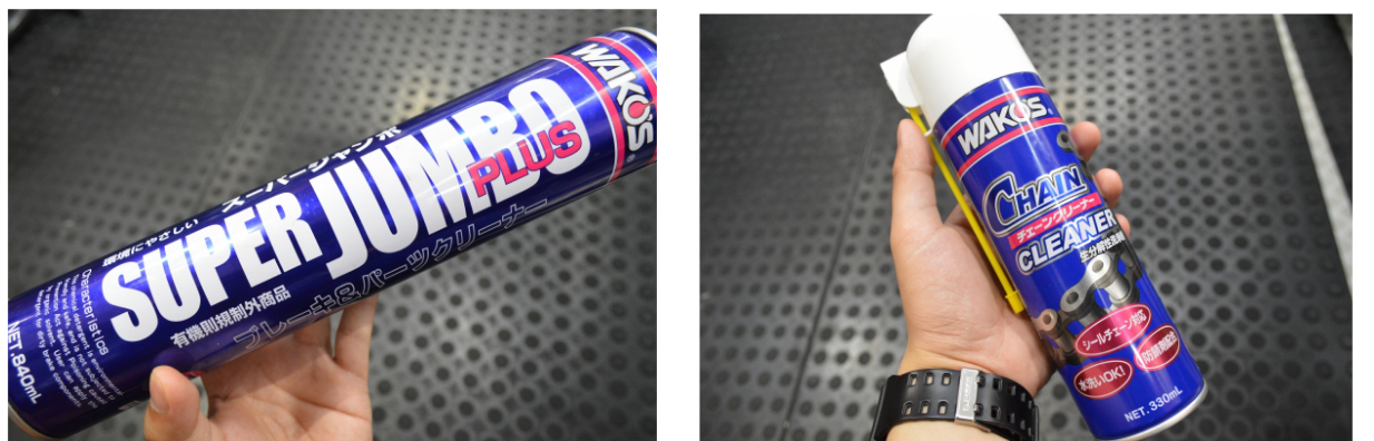 チェーンクリーナーとパーツクリーナーってどっちを使えばいいの? カテゴリ: パーツ・アクセサリー タグ: #パーツクリーナー #チェーンクリーナー #掃除 投稿日時:2022-04-26 どうもこんにちは。ワイズロード松山店スタッフです。 自転車を洗浄するときに欠かせない「パーツクリーナー」と「チェーンクリーナー」。 ・チェーンクリーナーはチェーンにしか使えないの? ・パーツはすべてパーツクリーナーで洗浄するの? ・どんな違いがあるの? など迷っている方もいらっしゃると思います。 今回はそんなお悩みを解消すべく、違いや効果的な使い方をまとめました。 目次 パーツクリーナーとチェーンクリーナーの違い ①料理用バットにオイル汚れをつける ②数秒後 ③数分後 ④軽く水で流す 解説 使い分け 強力な汚れには「泡」も使って チェーンクリーナーのおすすめ3つ パーツクリーナーとチェーンクリーナーの違い 簡単にいうとパーツクリーナーは脱脂剤で、チェーンクリーナーは洗浄剤です。 汚れ落ちの違いを実験してみました。比較した商品はこちら。 ・WAKO’S/SUPER JUMBO パーツクリーナー (現在はBC-SJ ストロングジャンボ パーツクリーナーに名称変更) ・WAKO’S/チェーンクリーナー (左からパーツクリーナー、チェーンクリーナー) ①オイル汚れを用意する 料理用バットにそれぞれ油性ペンで文字を書きます。だいぶ弱いですがオイル汚れとします。 (油性ペンで文字を書きました) 余談ですが、料理用バットは一つ持っておくと意外と便利です。パーツをばらした時に無くさないようにまとめたり漬け置き洗浄に使えたりします。 ホームセンターや百円均一ショップなどに置いていますのでパーツを触る方はぜひ。 ②数秒後 かけてから数秒後にもかかわらず両者に違いが出てきました。 (かけてから数秒後。少し差があります) ・パーツクリーナー:ガスの威力で文字のかけらが少量吹っ飛んでいきました ・チェーンクリーナー:汚れがにじみ始めています ③数分後 かけてから数分後です。 (かけてから数分後。左からパーツクリーナー、チェーンクリーナー) ・パーツクリーナー:溶剤が乾いてしまいました ・チェーンクリーナー:さらに文字がにじんでいます ④軽く水で流す 数分置いたあと、軽く水で流してみました。 (左のパーツクリーナーより右のチェーンクリーナーのほうが落ちています) ・パーツクリーナー:ほぼ汚れが落ちていません ・チェーンクリーナー:ほぼ読めないくらいまで落ちました 今回の実験ではチェーンクリーナーに軍配が上がりました。 解説 パーツクリーナーは油分を落とすのが主。アルコール類が含まれているので揮発しやすいです。 今回実験したような汚れを浮かせるには大量にかけなければならず、コスパがとても悪いのとアルコール類が揮発して危険なのであまりお勧めできません。 チェーンクリーナーは揮発しにくいだけでなく界面活性剤なども含まれており、汚れを浮かせる能力が非常に高くなっています。元が石油系溶剤なのでかけたまま放置するとヌルヌルしますし、水と混ざると乳化して白くなります。 使い分け 場所ごとに使い分けると効果的です! フレームのひどい汚れなどにはパーツクリーナーを。布などに吹き付けてお使いください。 チェーンやそれ以外の頑固な汚れにはチェーンクリーナーを。 チェーンクリーナーに至ってはフレームの酷い油汚れにも薄くスプレーして拭き上げると効果絶大。1本持っておくと自転車を綺麗にしやすいです! 強力な汚れには「泡」も使って チェーンクリーナーとあわせて中性洗剤やWAKO’S フォーミングマルチクリーナーも使うとより効果が高まります。 チェーンクリーナーをかけてしばらく放置してから、中性洗剤を希釈し泡立てたものもしくはWAKO’S フォーミングマルチクリーナーで洗浄してください。 (WAKO’S フォーミングマルチクリーナー) ちなみにこれは細かい泡で出て来るガラスクリーナーのようなもの。チェーンクリーナー後の仕上げやタイヤの汚れ、フレーム清掃などマルチに使えます。 1本持っておくとかなり便利です。 汚れを落とす力は強くないので、頑固な汚れやチェーン汚れは前述の通りチェーンクリーナーとの併用がおすすめです。 掃除におすすめのケミカルアイテム 今回使用した製品はこちらの2つ。 WAKO’S チェーンクリーナー WAKO’S BCスーパージャンボ ブレーキ&パーツクリーナー そのほかこちらのチェーンクリーナーもおすすめです。 MUC-OFF ( マックオフ ) ドライブトレインクリーナー ワイズロードオンラインでチェック SURLUSTER ( シュアラスター ) チェーンクリーナー S-145 480ml ワイズロードオンラインでチェック WAKO’S以外のケミカルも販売しておりますので、ご不明な点等ございましたらスタッフまでお気軽にお問い合わせください! 執筆者 ワイズロード松山店 エミフルMASAKI/スタッフ ※商品情報、スタッフの所属店は投稿時のものとなります。