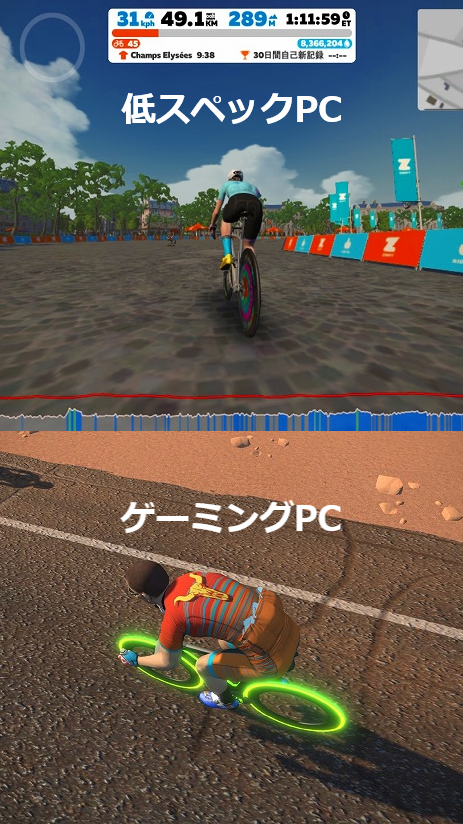スマートトレーナーでインドアサイクリングを始めよう! カテゴリ: スマートトレーナー タグ: #スマートトレーナー #スマトレ #インドアサイクリング #Zwift" #SARIS #ELITE #wahoo #商品紹介 バーチャルサイクリングアプリ 「Zwift」の登場により、 ゲーム感覚で誰もが没入できるエンターテインメントとなった「インドアサイクリング」。 折からのコロナ禍もあり、密を避けてサイクリングが出来ることからも人気が過熱。そんな流行の インドアサイクリングを始めるために必要なもの、あると便利なものをご紹介します。 目次 始めるには何が必要? スマートトレーナー 自転車 アプリとアプリを動かすデバイス 防振マット サーキュレーター タオル・スウェットガード サイクリングウェア ドリンク&ボトル、補給食 他にもあると便利なもの ヘッドバンド スマートフォンホルダー トレーナープラットフォーム もっと楽しむには? 仲間と走ろう! ワイズロードのZwiftコミュニティ「Y’sRoad Zwifters」 始めるには何が必要? 1.スマートトレーナー まずは室内で自転車を漕ぐために 「スマートトレーナー」 が必要です。 何が”スマート”なのかと言うと、Zwiftなどのアプリ内の地形やトレーニングメニューと連動してトレーナーの負荷が「自動」で変わるのです。 従来の”クラシック”トレーナーだと、ギアチェンジや負荷ダイヤルでペダリングの重さを変えていましたが、スマートトレーナーならそれが自動で、しかもバーチャル世界の起伏ある景色と連動して変わるので、 アプリの映像と相まって没入感あふれるインドアサイクリング体験を味わえます。 実際のZwiftのプレイ画面のイメージを動画でご覧ください。 スマートトレーナーを選ぶポイントは? 優先チェックポイントは「パワー計測精度」と「静粛性」です。 「パワー計測精度」 スマートトレーナーにはペダリングのパワーを計測する機能があり、そのパワーに基づいてアプリ内のスピードが変化します。 バーチャルレースに出場するのなら、不正パワーでレースを荒らさないためにも 精度は高いほど良いのですが、+-2%以内であれば問題ないでしょう。 ※一部のイベントでは厳格なルールが適用され+-2%以内の精度が求められています Zwift内のスピードは主にパワー値によって決まります(他に勾配や重量・空力などの抵抗やゲーム内のバイク性能にも依存します) 今はレースに出場しないエンジョイ勢であっても、将来ハマってしまう可能性もありますし、安いものでもなく、そうそう買い替えるものでも無いので、初期投資として初めにしっかりした製品を購入されることをお勧めします。中にはパワーメーターを搭載しておらず、仮想パワーでパワー値を出力する機種もありますが、そうした機種はメーカー公表のスペック以上に精度が低いものも一部あるので、後悔しないためにも詳しいショップスタッフに聞いたり、口コミの評判を参考にすると良いでしょう。 「静粛性」 家族や隣家に迷惑を掛けないために、なるべく静かなトレーナーを選びましょう。 バイクの後輪を外してトレーナーにセットする「ダイレクトドライブ」タイプなら、ほとんどの製品が満足のゆくレベルの静粛性を持っています。ダイレクトドライブタイプではトレーナーの作動音よりも、むしろチェーンの駆動音や変速音の方がはるかに大きく聞こえるはずです。 また、耳に聞こえる音量が同じでも、床に伝わる振動を抑えた製品もあり、数値スペックに現れないこうした点をショップの試乗機などで確かめてみましょう。 ダイレクトドライブタイプならほどんどの製品が満足行く静粛性を持ちます 次のチェックポイントは 「収納性」と「重量」 です。 これはスマートトレーナーを設置したままにできない方向けのチェックポイントです。簡単に収納できて、簡単にセットアップできるか確認しておきましょう。 「収納性」 まず、簡単に脚が畳めてコンパクトになること。 製品によっては脚が畳めない、脚を外すのに工具が必要、など据え置きを前提としていて、ライドの度のセットアップが困難なものもあります。また、収納スペースが限られているなら脚を畳んだ際のサイズも重要です。 ELITEのSUITOは収納時の幅がわずか15cm(画像:カワシマサイクルサプライ) ワイズロードオンラインでチェック がっちりした造りで重厚感のあるSARIS H3ですが、収納時の本体幅は21.6cmに収まります ワイズロードオンラインでチェック 「重量」 軽ければ収納・セットアップの際の負担が減ります。その一方で、スプリント時の安定性が下がることにもなりますので、 ライドのクオリティを重視するなら、むしろ重いものを選んだ方が良いでしょう。 「安定性」 見逃されがちながら、重要なチェックポイントです。数値スペックに現れないものですが、 パワー系ライダーやバーチャルレースでスプリントを楽しみたい方なら、見逃せない要素です。ダンシングで思いっきりペダルにパワーを込めてもしっかりと受